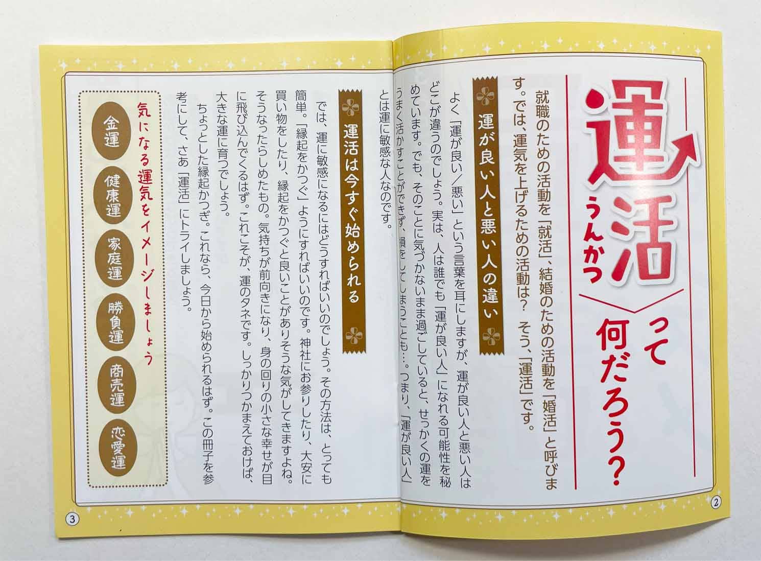 この「運活のすすめ」には、365日運気を上げる様々な方法が記載されています。